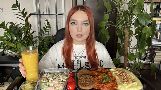 МУКБАНГ | Котлеты, пюре, не крабовый салат, сок 🍲