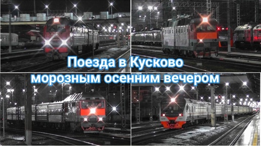 Поезда на станции Кусково морозным осенним вечером. Постоянный гость из Питера - ТЭП70 и т.д.