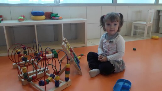 Пока старшая сестра тренируется в бассейне "Атланктика", младшая Ксюша играет в детской комнате. Рады и родители и дети.
