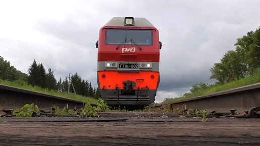 Под газотурбовозом ГТ1h-002 с грузовым поездом весом 9000 тонн