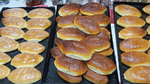 Стряпаю пирожки с фаршем в русской печи.