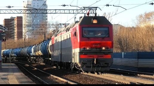 2ЭС6-444 "Синара" с грузовым поездом следует через платформу Первомайская