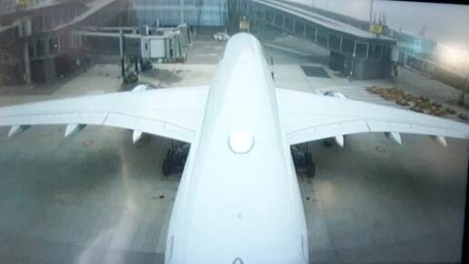 Взлет А350 в сильный туман (съемка с камеры на хвосте самолета)