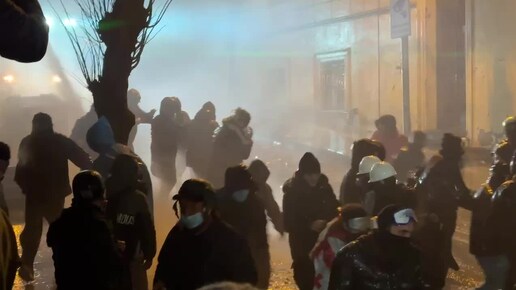 Полицейские в Тбилиси продолжают вытеснять участников беспорядков от боковых входов в здание парламента