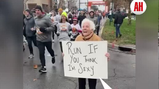 «Беги, если считаешь меня сексуальной» - пока марафонцы проходили дистанцию, бабушка развлекала зрителей.
