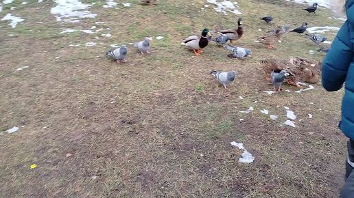 Утки и голуби на набережной. Тверь. Набережная Афанасия Никитина.