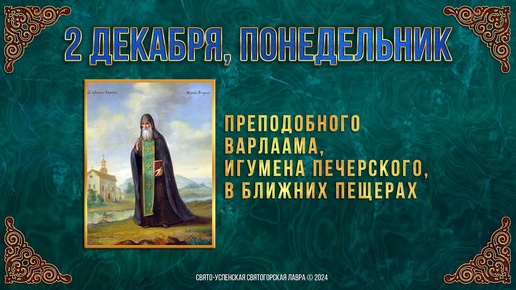Прп. Варлаама, игумена Печерского, в Ближних пещерах. 2 декабря 2024 г. Мультимедийный календарь