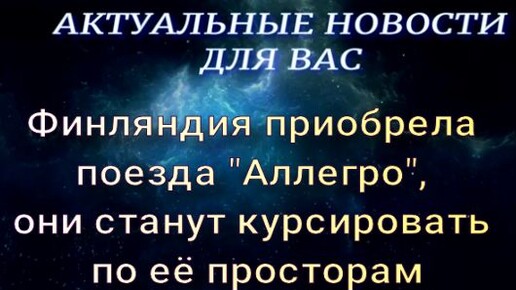 Финляндия приобрела поезда Аллегро теперь они будут ездить по её просторам