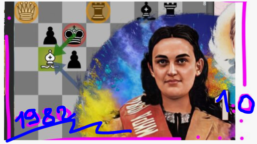 Майя Чибурданидзе громит Владимира Маланюка в Одессе, 1982. Отличная партия с уверенной победой за белых (Защита Грюнфельда, 1-0)