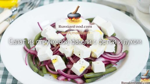 Простая, но очень симпатичная закуска. Салат из стручковой фасоли с фетой и луком