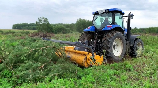 Трактор Ньюхоланд с ротоватором mericrusher, расчистка полей от пней и деревьев