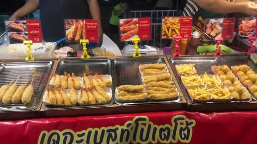 Ярмарка в рыбацкой деревне на Самуи в Таиланде. Еду можно есть на ходу, все дешево!