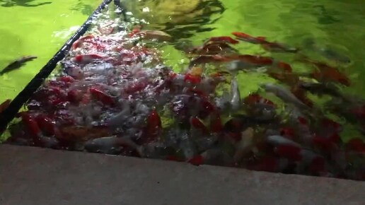 Кормим радужных Карпов Кои в Таиланде. Вот это да! Фильм Пираньи 3d просто!