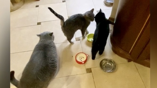 Не дала вкусняшек голодненьким котикам 😿 Они теперь дежурят у заветного шкафчика 🤨 Умники