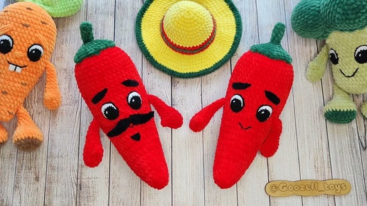 Обзор вязаной игрушки "Перчик Чили" из плюшевой пряжи (схема и описание амигуруми крючком)