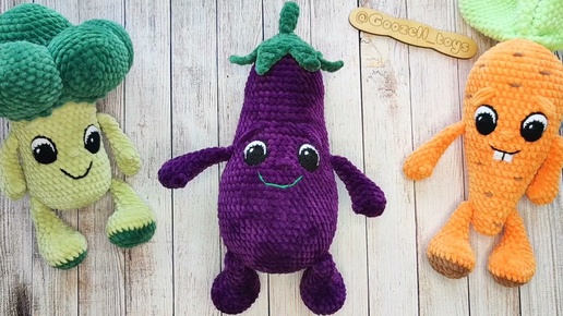 Обзор вязаной игрушки "Баклажан крючком" 🍆 по МК от @goozell_toys. Схема амигуруми из плюшевой пряжи