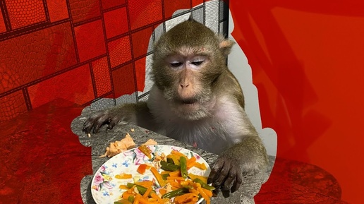 Лосось и овощи для макаки