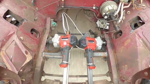 Собрали электро-жигули 4WD 220v - дрель на каждое колесо. Проверяем как далеко мы на ней уедем