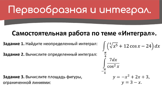 Разбор самостоятельной работы по теме «Интеграл».