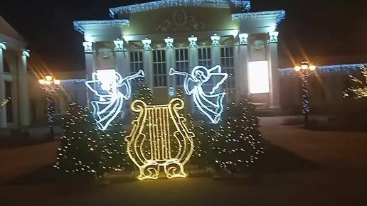 Новогодняя световая композиция перед филармонией. Рязань