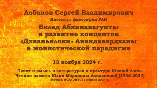 Конференции. Вклад Абхинавагупты в развитие концептов «Дхваньялоки» Анандавардханы в монистической парадигме. С. В. Лобанов