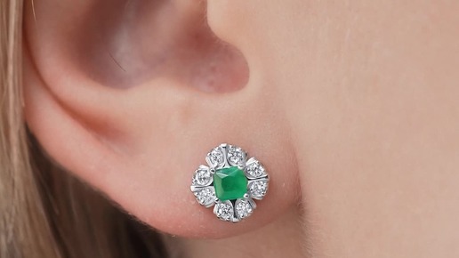 Пусеты из платины с изумрудами и бриллиантами от Platinum Lab. Артикул украшения: ПС-331И-01