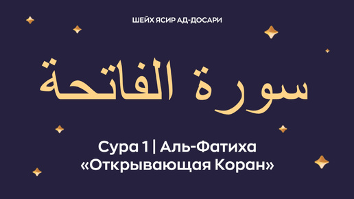 Сура 1 Аль-Фатиха — Открывающая Коран (араб. سورة الفاتحة). Читает Шейх Ясир ад-Досари (араб. ياسر الدوسري).
