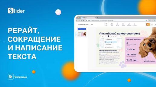 Рерайт, сокращение и написание текста с помощью ИИ в редакторе Slider AI