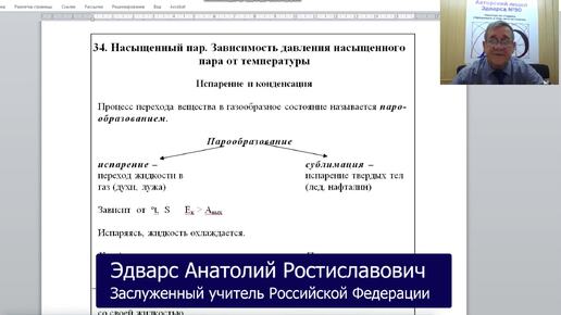 Физика ОК 034 Насыщенный пар. Зависимость давления насыщенного пара от температуры