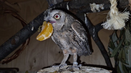 Маленькая сова безжалостно расправляется с мандаринкой! Сок, мякоть, расчленёнка!