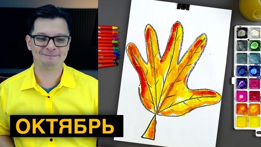 Как нарисовать ЛИСТ Клена из руки - рисуем красками с РыбаКит