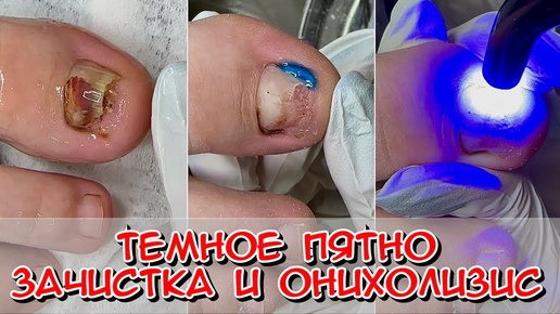 Темное пятно / Зачистка онихолизиса / Онихолизис на ноге / Что с ногтем? Что делать?