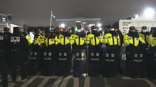 Протестующие в Южной Корее после введения военного положения