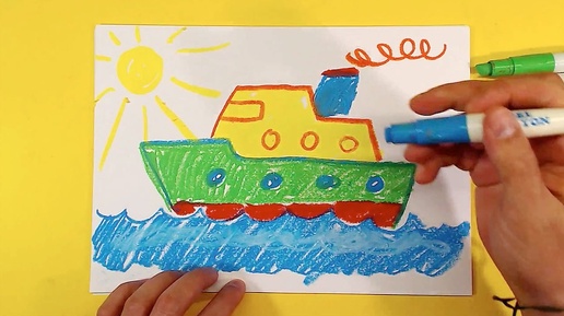 Как нарисовать ПАРОХОД Корабль / Урок рисования для детей от 3 лет