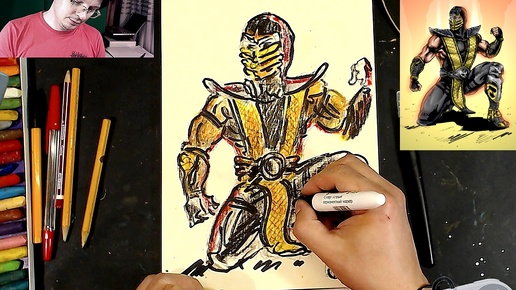 Как рисовать Scorpion персонаж серии Mortal Kombat Сега 16 bit
