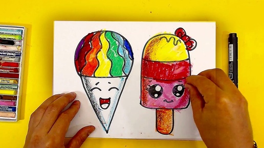 Как нарисовать МОРОЖЕНОЕ Радугу / Уроки рисования для детей