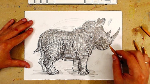 Урок рисования ПРОСТЫМ КАРАНДАШОМ / Как нарисовать НОСОРОГА для начинающих
