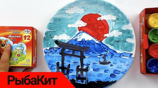 Пейзаж на ТАРЕЛКЕ рисуем Япония красками гуашь