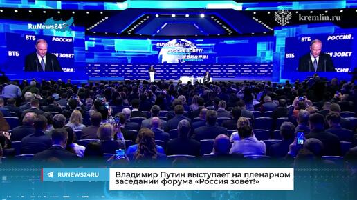 Владимир Путин выступает на пленарном заседании форума «Россия зовёт!»