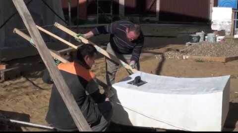 Приготовились резать из большого куба пенопласта радиусные листы для приклейки на круглые стены дома