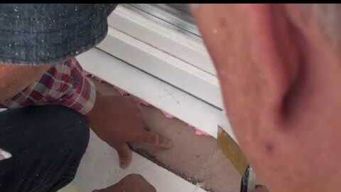 Технология мокрого фасада СФТК, вклеивание клинышка из пенопласта под установку подоконного отлива