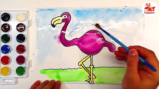 Фламинго АКВАРЕЛЬЮ : урок рисования для детей