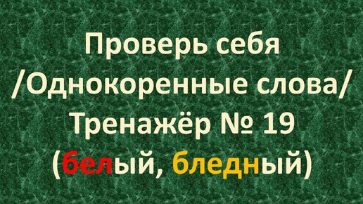 Проверь себя /Однокоренные слова/ Тренажёр № 19 (белый, бледный) /1 – 2 класс/ 5+.