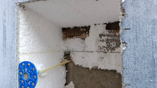 Контрольное вскрытие качественно выполненного фасада, утеплённого ППС16ф под плиточную облицовку