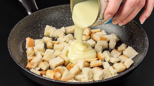 Gießen Sie Kondensmilch in Weißbrot! 5-Minuten-Dessert-Rezept! Erstaunlicher Nachtisch
