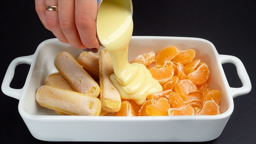 Новогодний мандариновый десерт, который ищут все! Без выпечки, рецепт за 5 минут.
