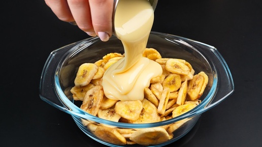 Смешайте сгущенку и банановые чипсы! Десерт за 5 минут и исчезает с тарелки за 1 минуту!