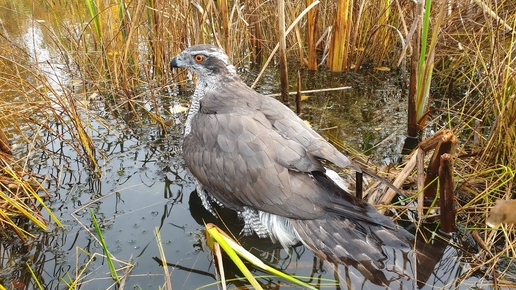 Доплыть и переплыть! Ястреб Сильва переплывает пруд