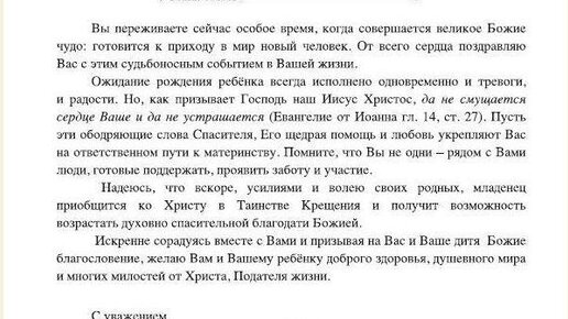 В Коми беременным будут вручать письмо от патриарха Кирилла
