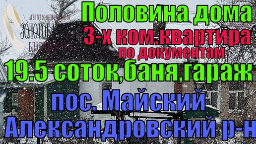 1/2 часть кир. дома (3-х ком.квартира) с баней и гаражом на участке 19.5 соток в посёлке Майский